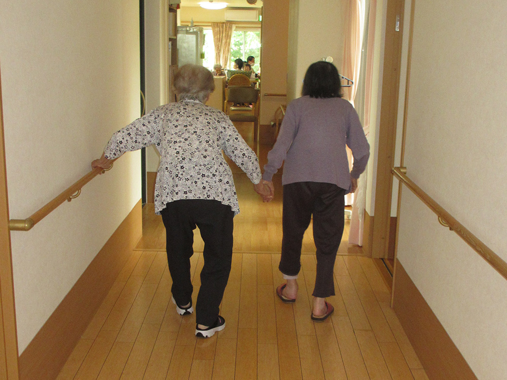 歳を重ね、足腰が弱くなって歩けなくなっても、ご希望があれば最期までこのグループホームで生活することができます。介護量は増えますが、病院に入院して治療するのでなければ、グループホームのスタッフが最期までお世話させていただきます。