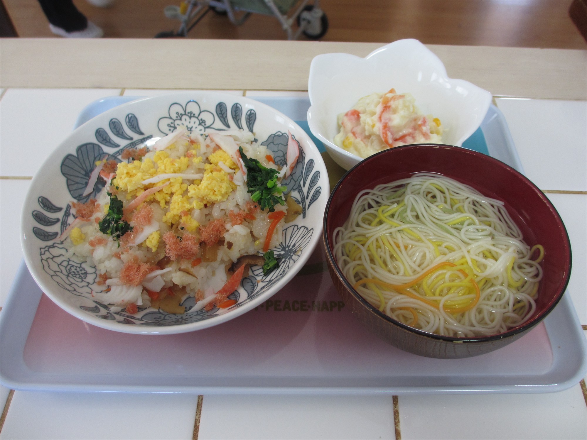 テレビ鑑賞やレクリエーション、みんなで体操などをします。おやつ作りや掃除など、できる方は一緒に行います。